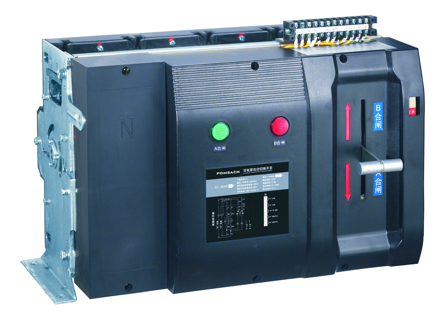CBH-S1系列ATSE由开关本体与转换控制两个部分组成,,,,开关采用电磁线圈驱动,,,,转换速度快,,,转换控制器的电源采取常用,,备用电源的AC220作为工作电压。。。。
