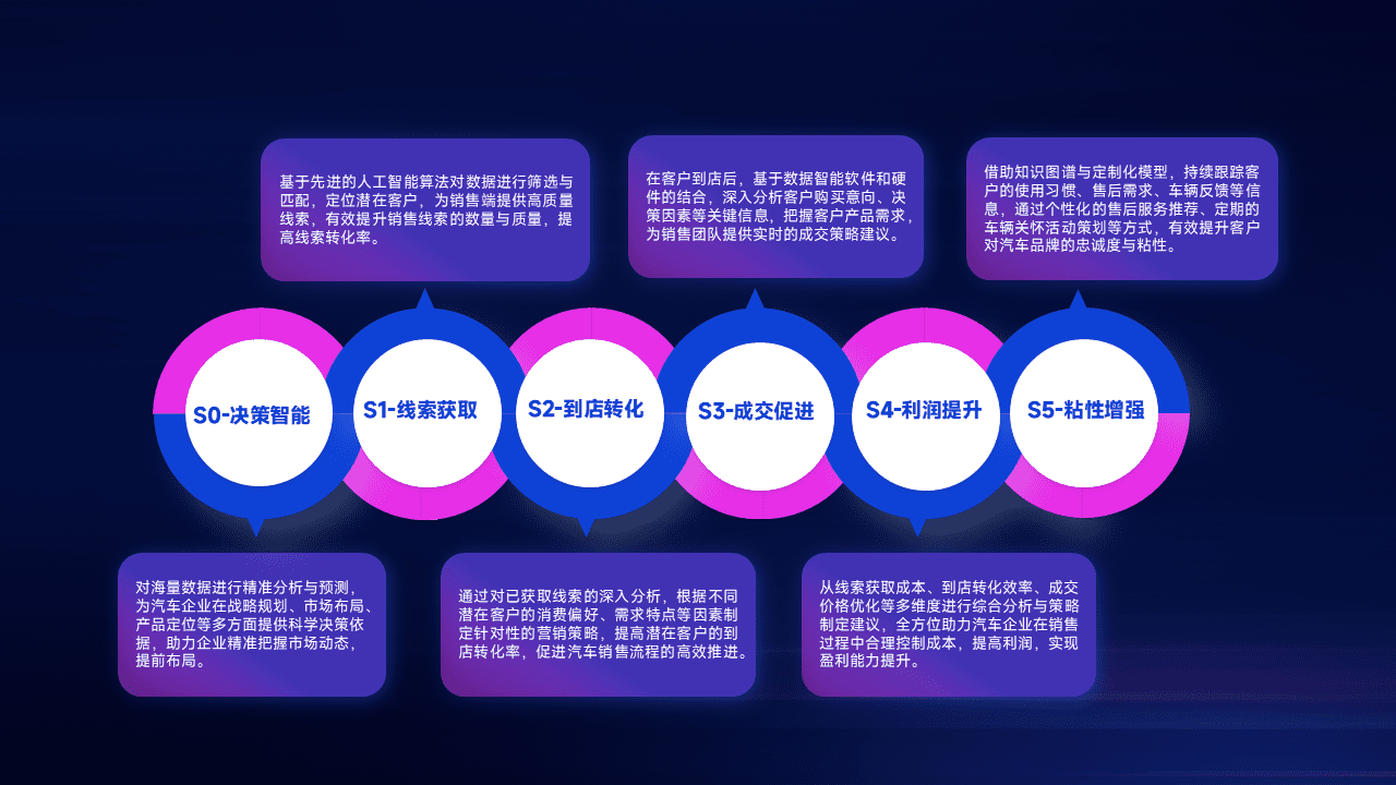 通过拓宽潜在客户来源、、、、优化线索分配并提高到店转化率,,以增强销售效率。。。同时,,,,利用线索数据不断优化分析模型,,有效提升转化率,,,扩大营销影响力。。